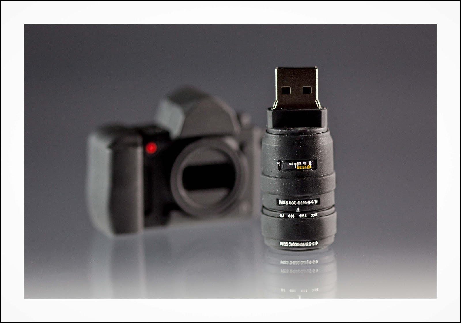 5. Play with my new 4 Gb flash drive (see below) and acrylic platform (no shadows !!!) and graduated background (so simple - so perfect). Time for some macro lens fun and photoshop!!